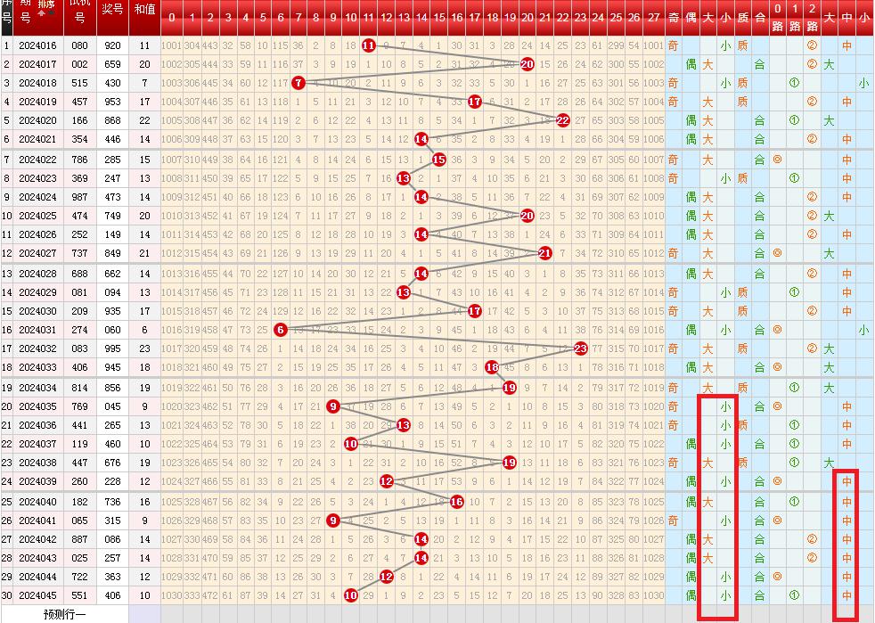按大(14-27)小(0-13)分,上期开出小数和值,按近期跟随表现,本期大小和值都有可能,大和值可能性大些。