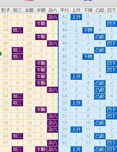 上期开出了杂六类型,根据最近的类型走势判断分析,本期杂六类型落重走势是很不错的,可以选择,其次杂六开出后组三的走势就很对称了,另外已经遗漏5期的半顺近期就要回补了,不得不防;