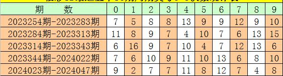 大小分析:在上一个30期周期内(第2023344期-第2024022期),奖号大小比为47:43,大号开出频次较高;在但前30期周期内(第2024023期-第2024052期),3D开奖大小比为39:51,大号走势相对低迷。大号最近4期明显较冷,本期注意回补,预计开出2个大号。