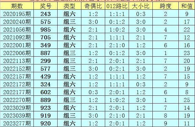 十位号码:前两期十位分别出现奖号3-4,历史上福彩3D连续前后分别开出号码3-4的现象共开出82次。在十位3-4的现象出现时,最近15期其下期分别开出号码:243-575-985-705-349-887-299-577-429-324-602-889-923-919-920;