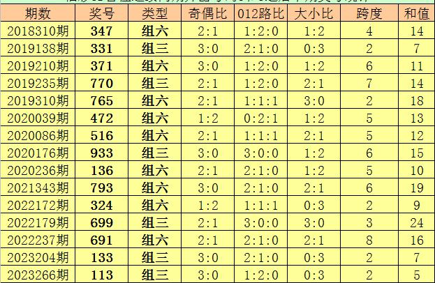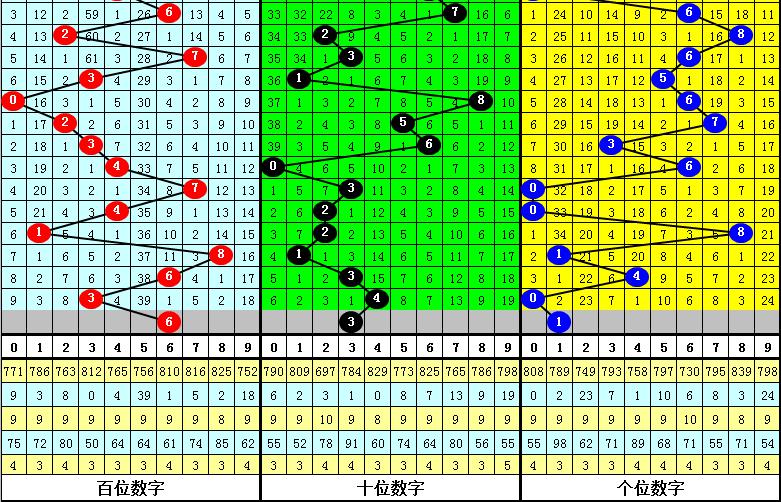 百位号码:连续两期百位出号分别为:6-3,历史上福彩3D连续两期前后分别出号6-3的奖号共出现94次。在百位6-3的奖号现象出现时,近15期下期分别出号:347-331-371-770-765-472-516-933-136-793-324-699-691-133-113;