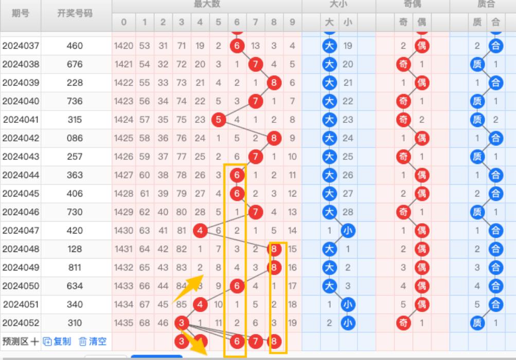 根据最大值走势图本期看好最大值34678,重点看最大值46。