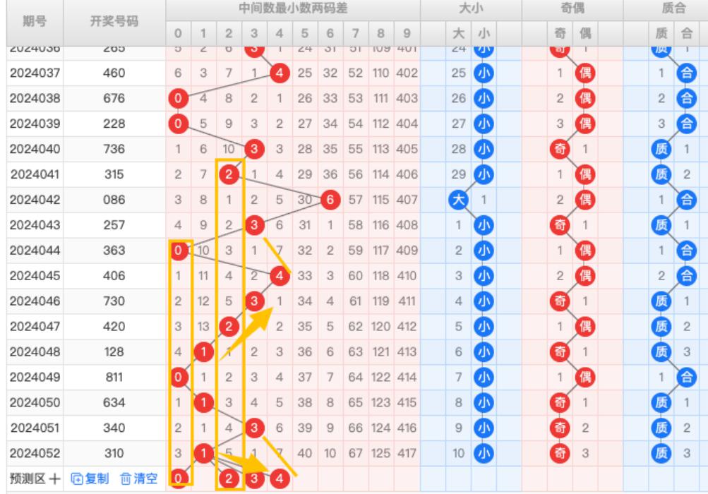 【回顾】我们先回顾下上期24052期的福彩3D开出310,三个小码,两奇一偶,和值4点落,跨度3,均值1,最小差1。