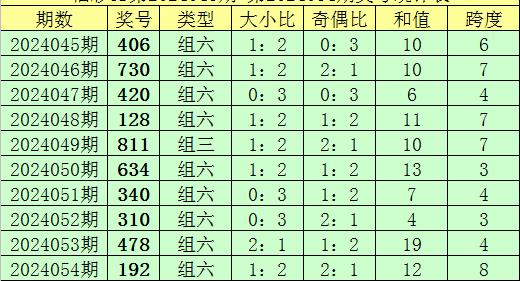 其中大小比1:2,奇偶比2:1,和值12,跨度8。