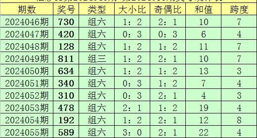 其中大小比3:0,奇偶比2:1,和值22,跨度4。