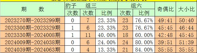 在最近一个30期周期内(第2024039期-第2024068期),豹子奖号没有出现,组三奖号开出了4次,所占比例为16%,组六奖号共出现21期,开出比例为84%,上期出现组六号码之后,本期看好组六号码继续开出。