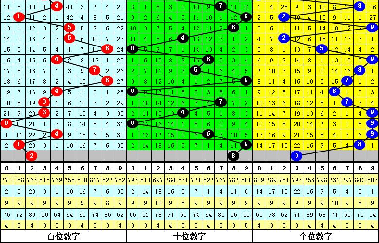 另外,两码合出现期数从高到低分别为:8开出9期,2、6开出7期,1、3开出6期,0、5、7开出5期,9开出4期,4开出2期,本期两码合参考:0、1、5。