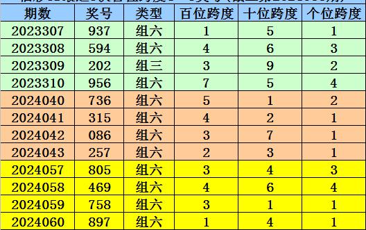 第2024057-第2024059期奖号:805、469、758,其下期奖号为:897,首位号码跨度为1;