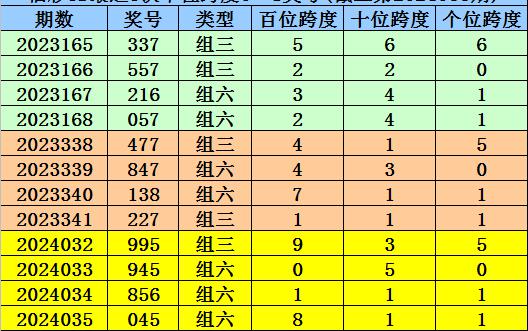 第2024032-第2024034期奖号:995、945、856,其下期奖号为:045,末位号码跨度为8;