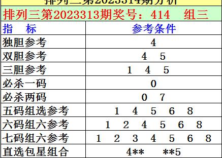 1.排列三最近十期分别开出号码:728-679-330-936-619-329-417-583-442-414,其中有6期奖号开出了上期的重复号码,本期预计第2023313期奖号:414中有重号,参考号码:4。