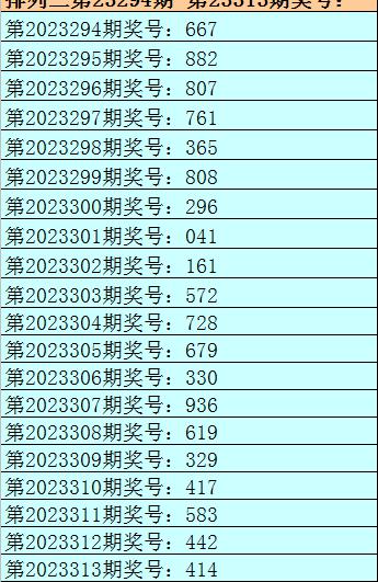 开奖回顾:排列三第2023313期开出奖号:414。其中奖号大小比为0:3,奇偶比为1:2,012路比为0:3:0,和值为9,跨度为3。
