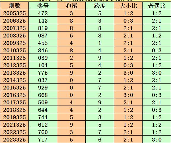 从2004年至今排列三已开出6746期奖号了,本期为排列三2023年第326期开奖,历史同期已出现17次奖号: