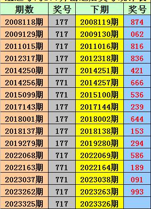 上期回顾:排列三第2023325期开奖号码为717,历史上组选出现16次,直选出现5次。