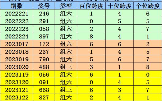 第2023119-第2023121期奖号:056、091、668,其下期奖号为:827,末位号码跨度为2;
