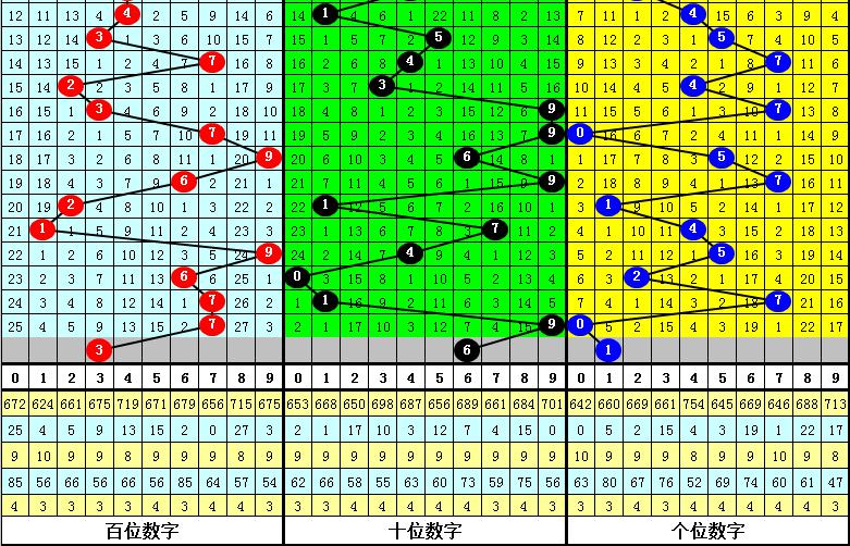 中位跨度分析:最近3期中位分别开出奖号0-1-9,最近两期跨度分别开出1、8,中位号码历史上连续两期跨度开出1、8的奖号共开出41次,其前两次奖号开出: