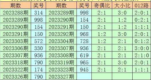 上期回顾:排列三第2023326期开出奖号790,类型为:奇奇偶、100路和大大小。