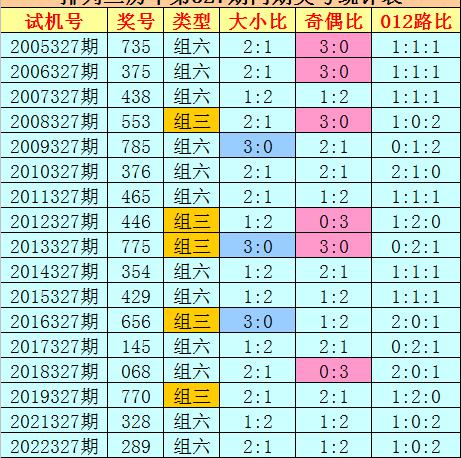 组选类型推荐:历史上排列三第327期同期奖号中,组六出现12期,组三出现5次,今年第327期预计奖号为组六号码。