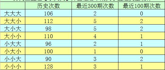 2.在前9次直选【小大大】组合之后,下期开奖号码分别为:860-840-247-096-419-808-041-747-790,组三包含2期,组六包含7期。本期奖号排除对子,看好开出组六。