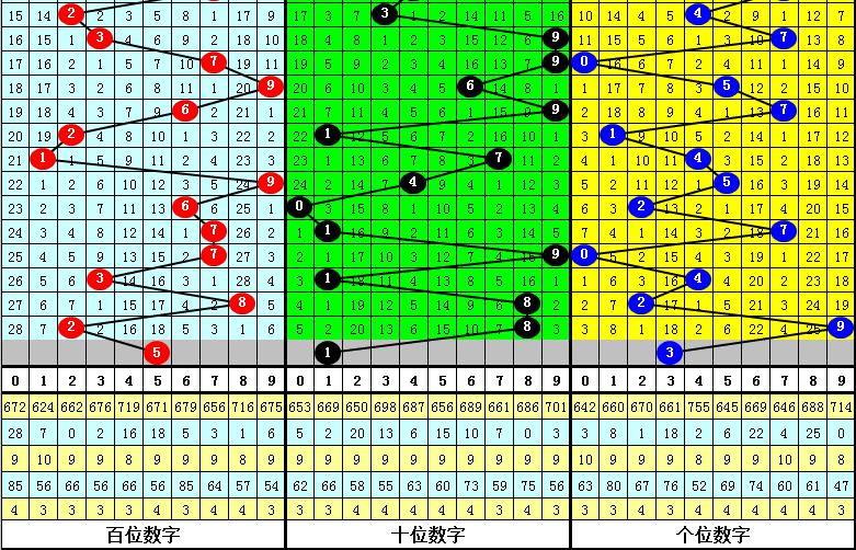 4.在上述9期开奖中,号码奇偶比分别开出0:3、0:3、1:2、1:2、2:1、0:3、1:2、2:1、2:1,奇偶号码开出个数比为9:18,本期预计奇数号码走热,防开出全奇组合。
