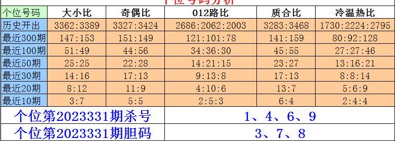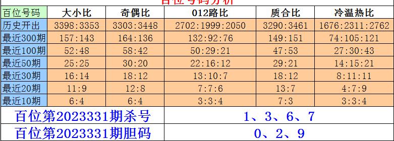 排列三百位第2023331期杀号:1、3、6、7