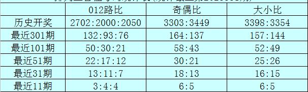 在连续11期奖号中,该位012路比为4:5:2,2路号码较少,目前012路号码遗漏期数分别是:0期、4期和2期,本期预计出现0路奖号。