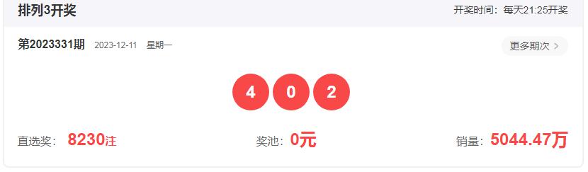 排列三第2023331期开奖回顾:开奖号码:402,形态组六