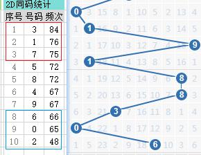上期第四位开出2,历史数据中第四位为2之后开出的号码频次如图左所示,第四位近期走势图如图右所示:
