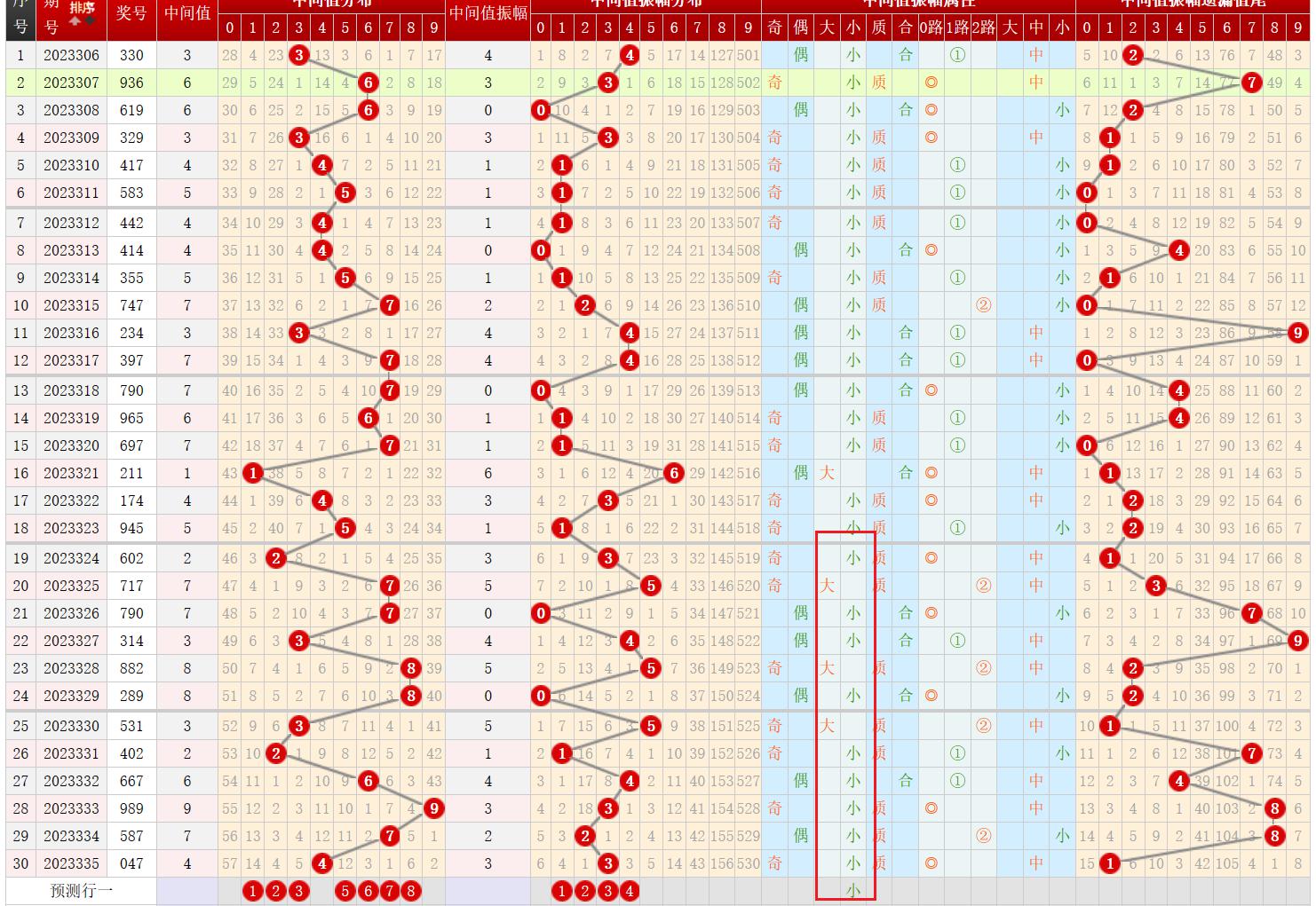 2、中间值振幅及出号走势情况(图二)