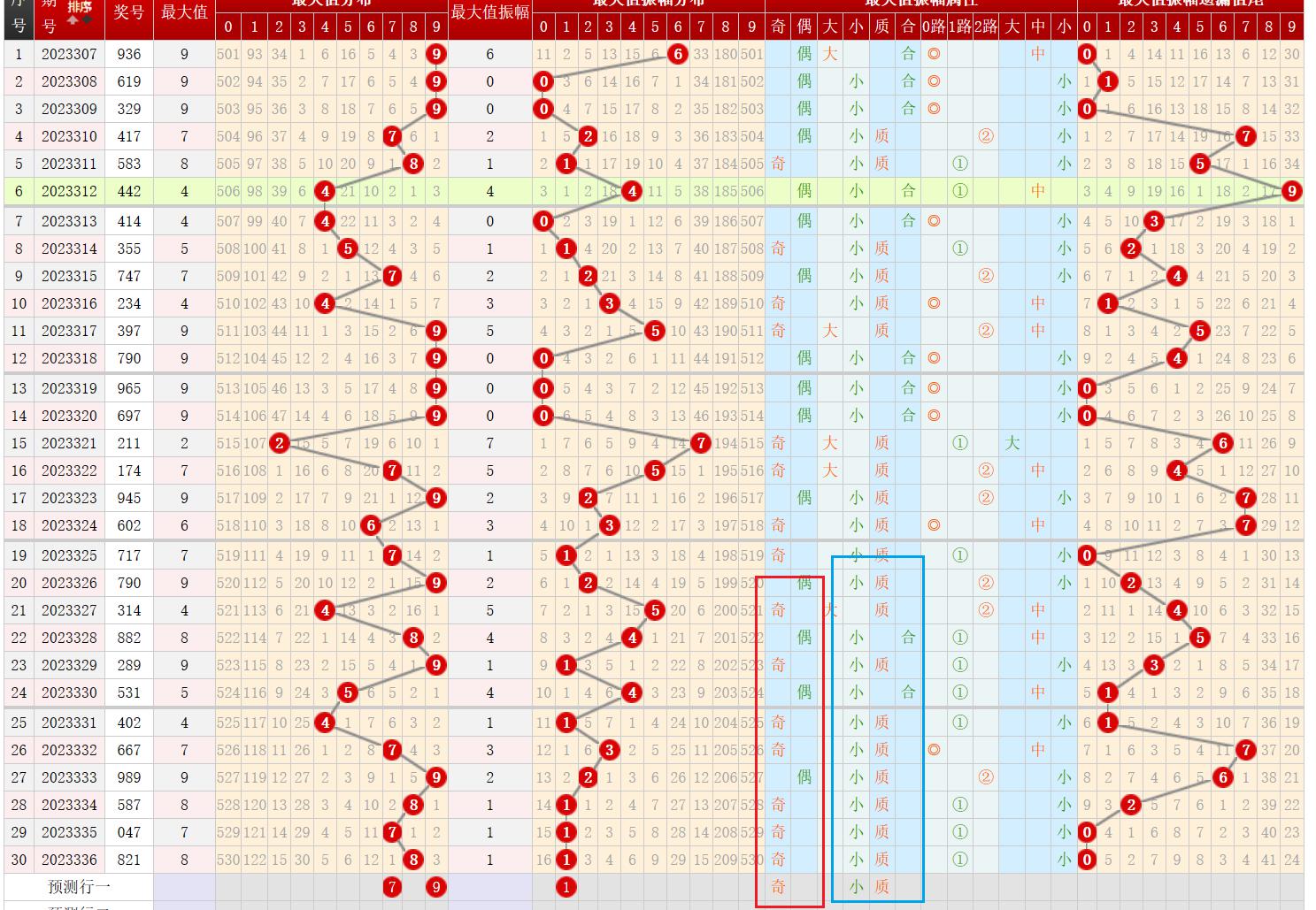 从最大值振幅大小属性来看,近10期内小数出号9期,小数出号机率高;从质合属性来看,近10期内质数连开趋势强,本期仍看好质数出号;故本期最大值振幅应该为小数、质数号码;符合条件的为1。通过振幅计算得出,本期最大值可能7-9。