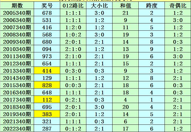 号码012路比:第340期历史同期号码012路比为18:16:17,本期预计012路比开出1:1:1。