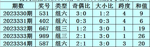 组选类型判断:排列三近期主要以组六号码为主,短期内不会改变,本期预计出现组六号码。