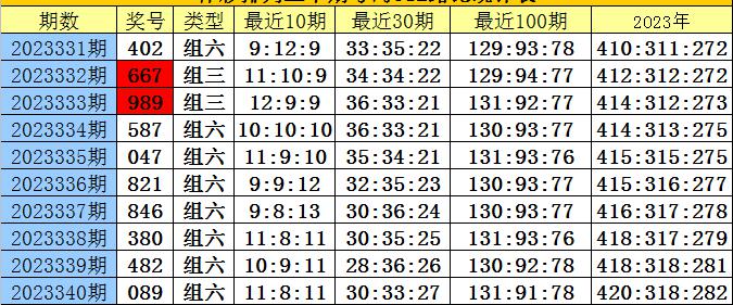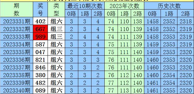 开奖回顾:排列三第2023340期奖号为:089,号码012路比为2:0:1。