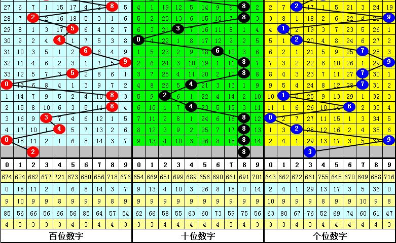 0路号码上期开出2个,近10期共出现11个走势相对较冷,其中0开出4个、3开出1个、6开出3个、9开出3个,本期应注意0路号码回补,参考号码3。