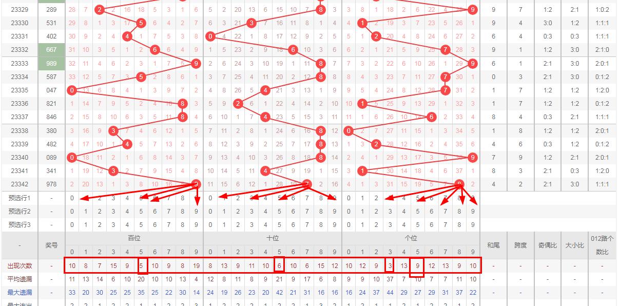 排列三走势分析:从上图可以看出百位号码连线走势到大奇数9,近10期内大数小数之间基本均衡,连续4期小数后有继续走向大数的势头。上期开出奖号9,前10次百位开出奖号9之后,其下期分别开出号码:3508108364其中号码奇偶比6:4,大小比为6:4,本期该位注意号码12567,排列三十位走势上近期大数一直占据上风比较强势且出号热区一直处于大数,回补了一期小数后有返回大数的可能,第342期开出大奇数7符合我们的预期,有继续返回小数的可能。且最近以连出11期偶数的偏态现象奇数有回补的需求。所以第343期排列三十位看好01359号码5 100期内才出现6次数据比其它号码小注意防守,排列三个位走势最近偶数较热.但经过连续几期的切换以逐渐正常,第342期个位开出大偶数8走到了大数顶端一般不会直落,本期可能延续大数的走势。连线走势上到大偶数8根据惯性出大数的话首选7和5次选3和6所以排列三第343期个位推荐23579本文由为彩网作者钱是生命动力所著请勿转载