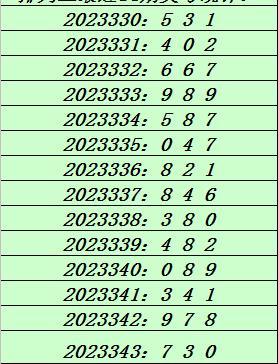 上期回顾:排列三第2023343期奖号:730。和值10,跨度7。