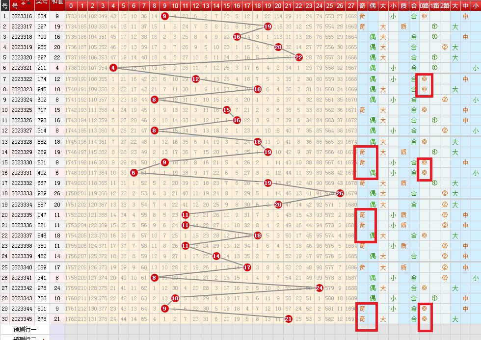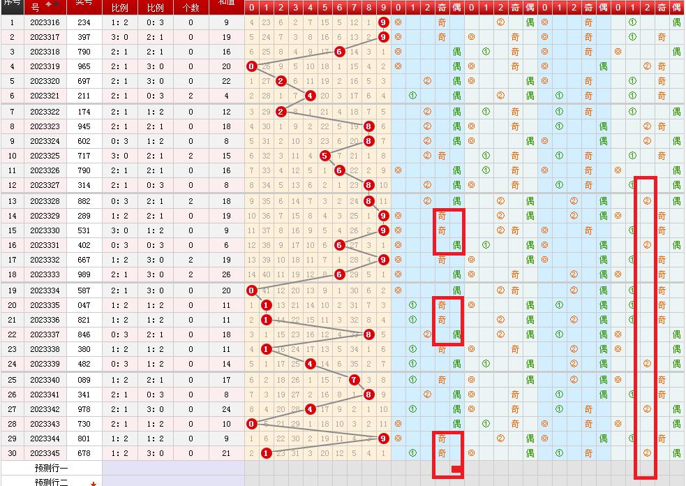 观察各位置奇偶开出趋势,本期选择奇数0个或者2个。