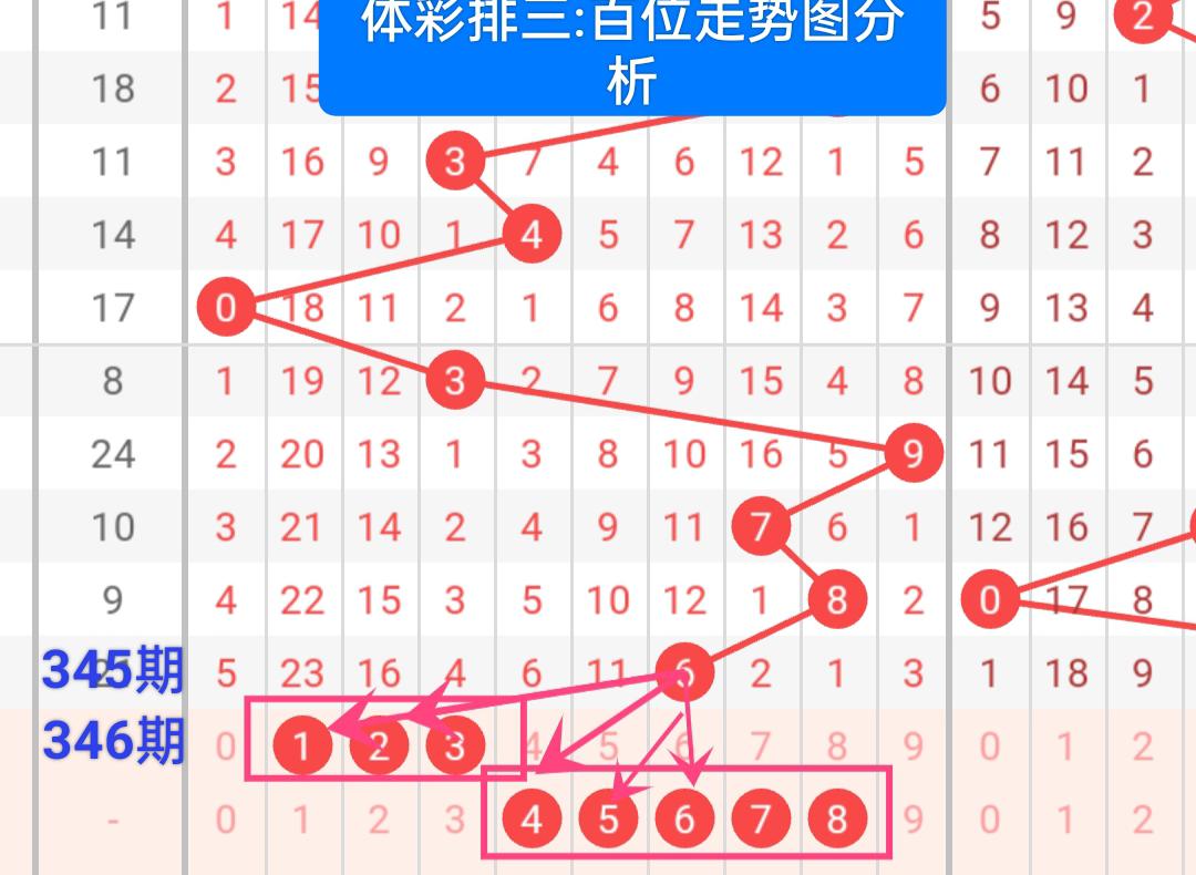 首先我们分析下:体彩排列三:2023346期,百位走势图定位分析