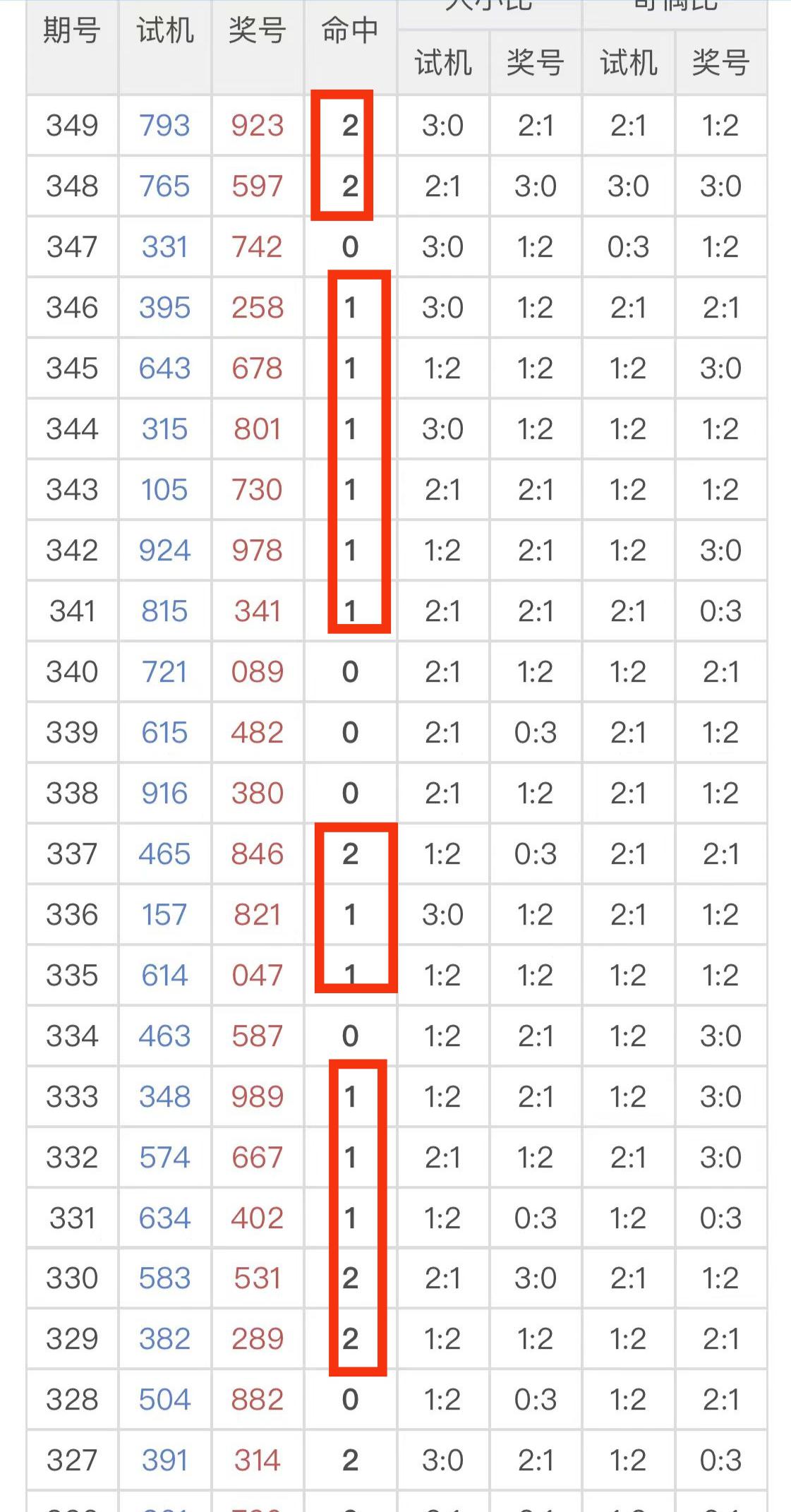 下图为近期试机号出号情况。