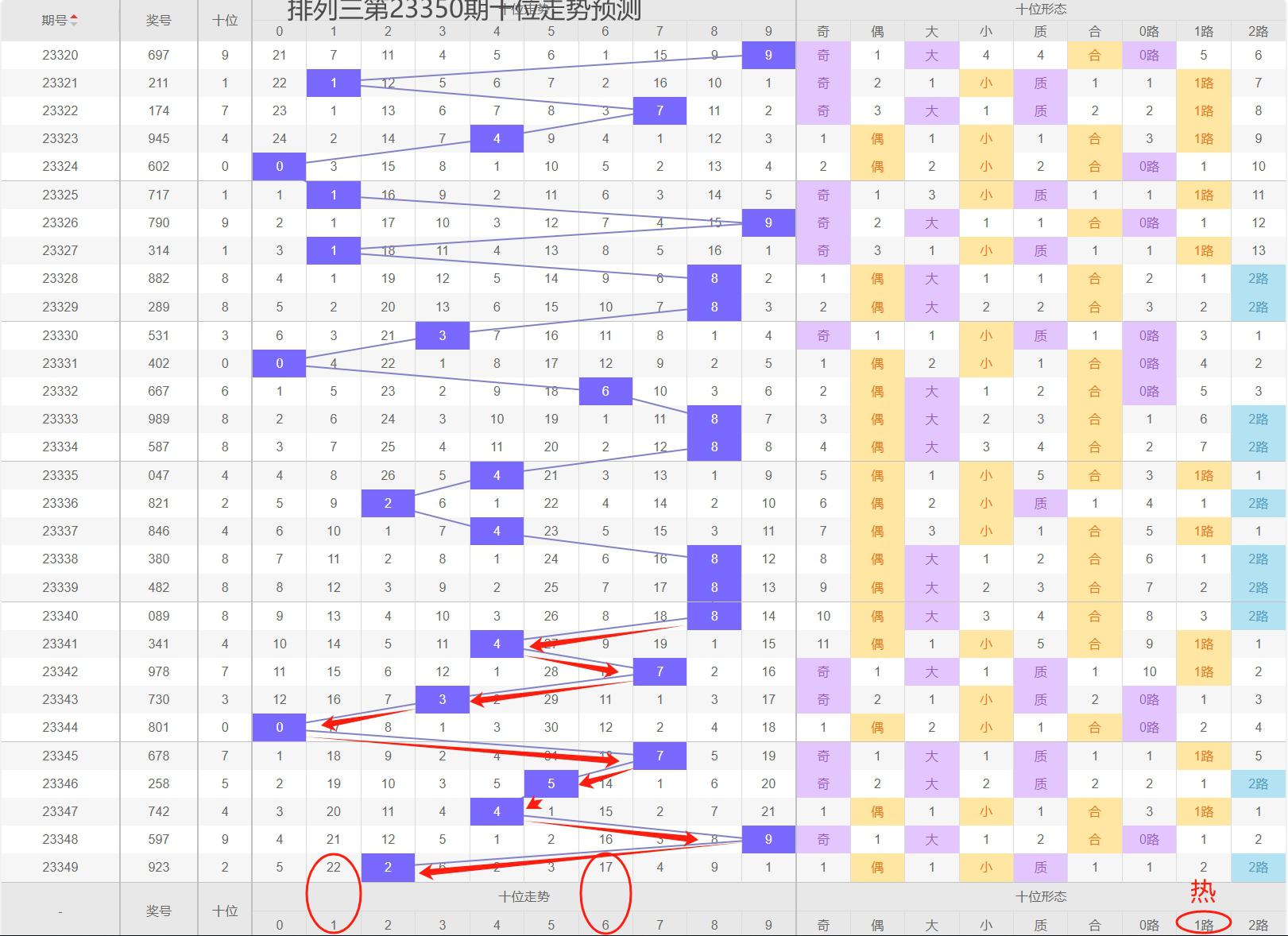二、排列三第23350期十位走势分析