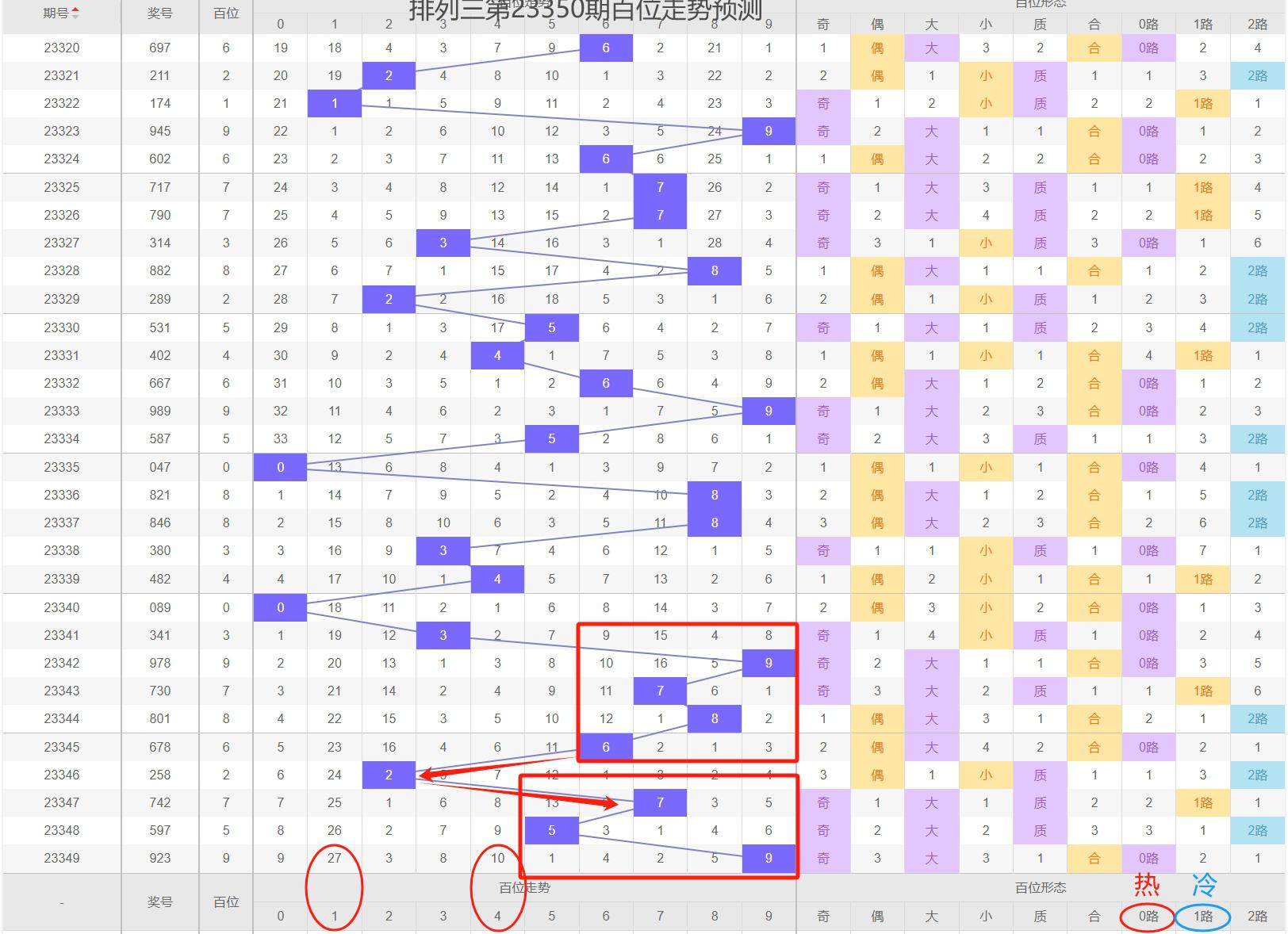 百位数字近十期0路号为热号,1路号较冷,只出现两期,本期大概率会出1路号。
