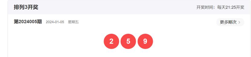 体彩排列3第2024005期开奖号码为259,形态为组六,奇偶比2:1,和值16,跨度7,大小比:2:1,【012】路个数比1:0:2。