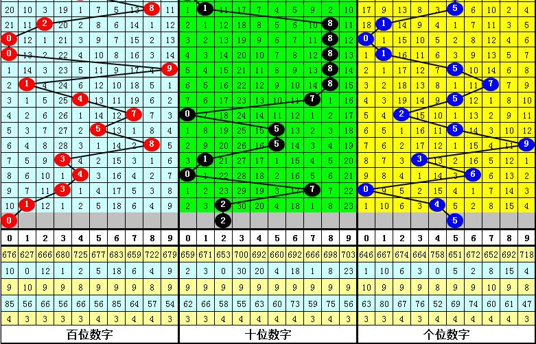 二、在最近22期开奖中,奖号:8、5、0、1,开出期数最多,本期注意这四码中落号,关注号码5;遗漏期数最多的三码奖号为:5、8、9,当期开奖一般不会全部出现冷码,本期可以排除号码9。
