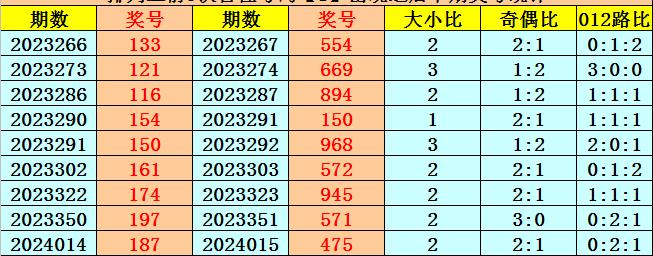 百位号码:百位上期奖号为2路、偶数、小号:1,历史上百位号码1共开出627期,前一次开出期数在第2024014期,上期奖号隔7期再次开出。