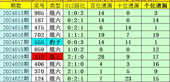 开奖回顾:排列三第2024022期奖号为:124,类型为组六,号码012路比为0:2:1,百十个位号码直选分别遗漏7期、23期和15期。