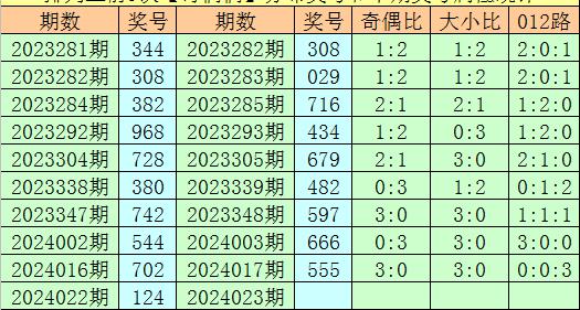 上期回顾:排列三第2024022期开出奖号124,类型为:奇偶偶、121路和小小小。