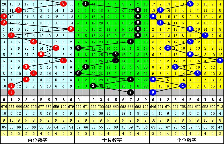 在最近9期开出奇偶分布:奇偶偶的奖号为:344-308-382-968-728-380-742-544-702,在下期出现号码分别为:308-029-716-434-679-482-597-666-555。其中百十个位号码分布情况如下: