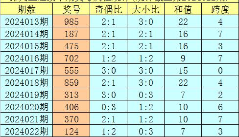上期回顾:排列三第2024022期奖号:124。类型:组六,奇偶形态:奇偶偶,大小形态:小小小,和值:7,跨度:3。