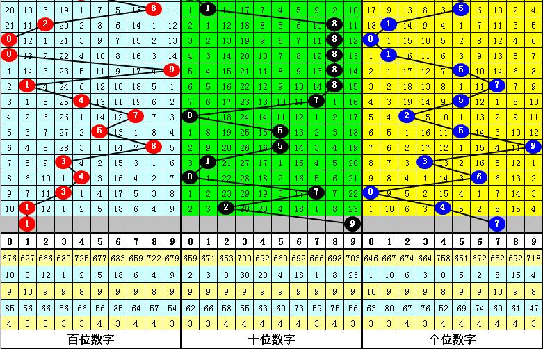 在前面5期奖号中,奇数落号个数分别为:2-3-0-2-1,偶数落号个数分别为:1-0-3-1-2,本期预计开出奇偶形态:全奇奖号。