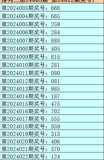 开奖回顾:排列三第2024022期开出奖号:124。其中奖号大小比为0:3,奇偶比为1:2,012路比为0:2:1,和值为7,跨度为3。