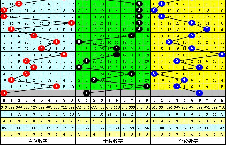 二、在最近22期开奖中,奖号:8、5、0、1,开出期数最多,本期注意这四码中落号,关注号码0;遗漏期数最多的三码奖号为:5、8、6,当期开奖一般不会全部出现冷码,本期可以排除号码5。